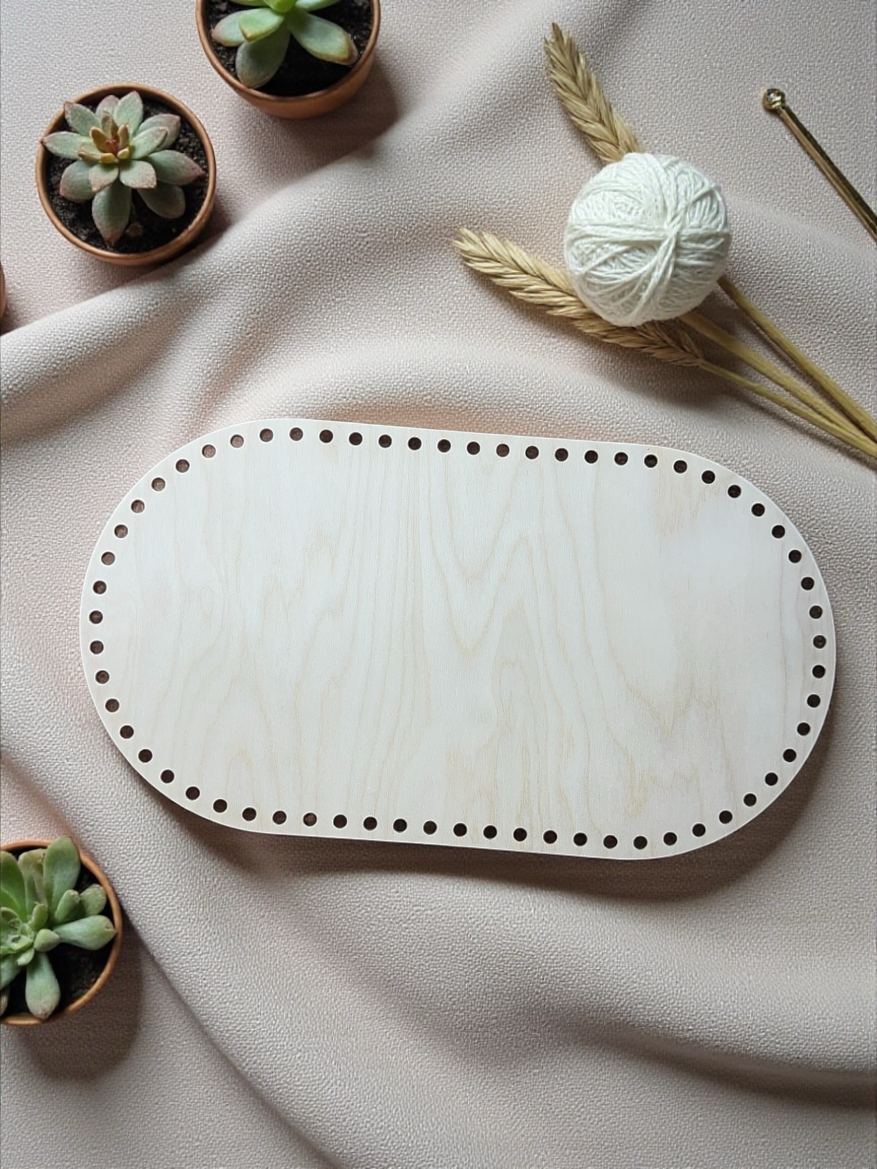 Craft sturdy, handmade baskets with this large 50.8 x 27.94cm wooden crochet base. Made from smooth 6 mm birch plywood with 10 mm holes, it’s ideal for crocheting with T-shirt yarn or 5-7mm cord. Perfect for reborn doll Moses baskets.